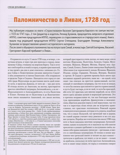 Представляем Вашему вниманию фрагмент из книги «Странствования Василия Григоровича-Барского по святым местам с 1723 по 1747 год» 2 том(редактор, издатель, переводчик со старославянского и старорусского языка, руководитель Кипрского отделения ИППО, советник Председателя ИППО Леонид Буланов. Книга издана под редакцией Председателя ИППО Сергея Степашина, под эгидой Императорского Православного Палестинского Общества. Благодарим Леонида Алексеевича Буланова за предоставленный ценный исторический материал.